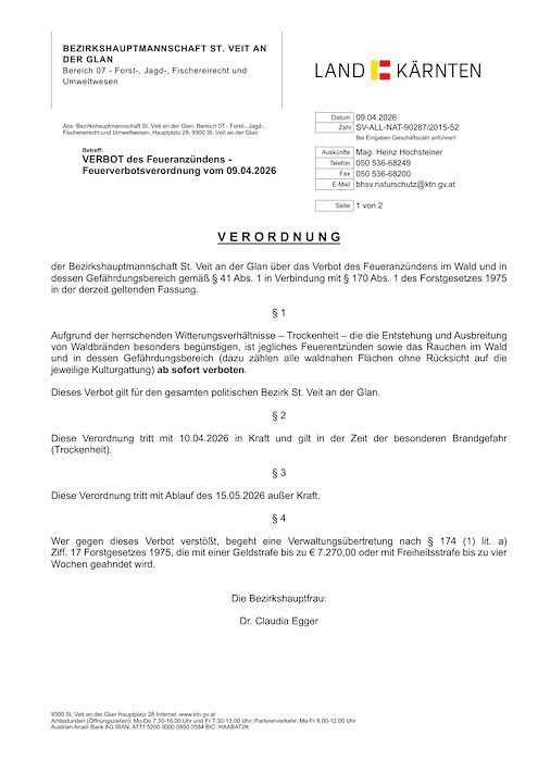 Feuerverbotsverordnung vom 09.04.2026