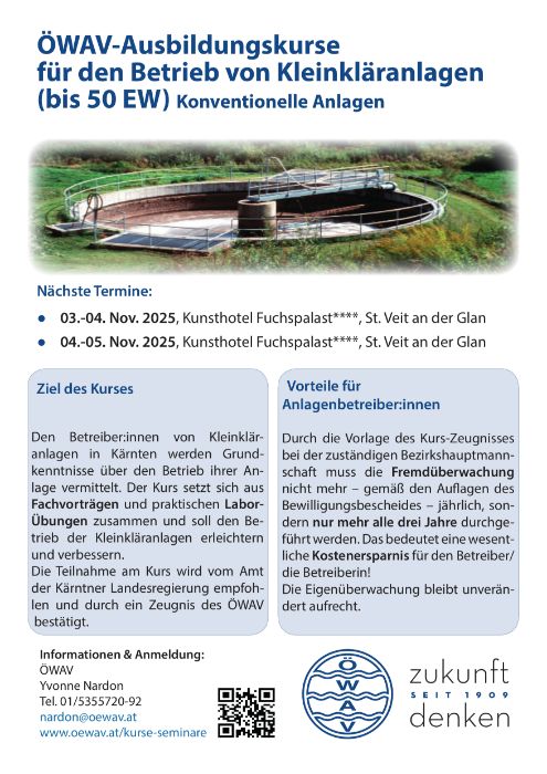 ÖWAV-Ausbildungskurse für den Betrieb von Kleinkläranlagen (bis 50 EW)